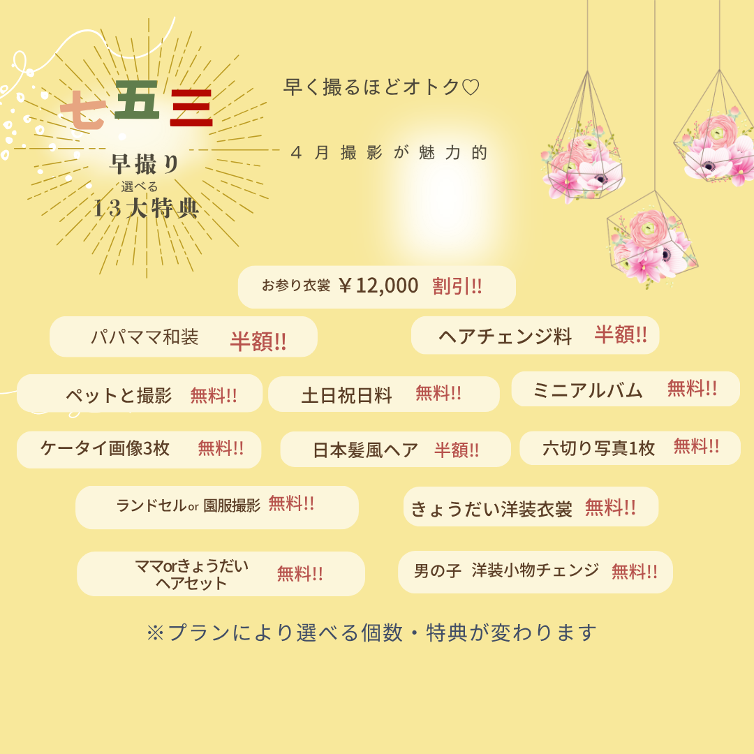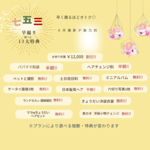 4月までの撮影でお得な早撮り・後撮り特典もついてきます🎁