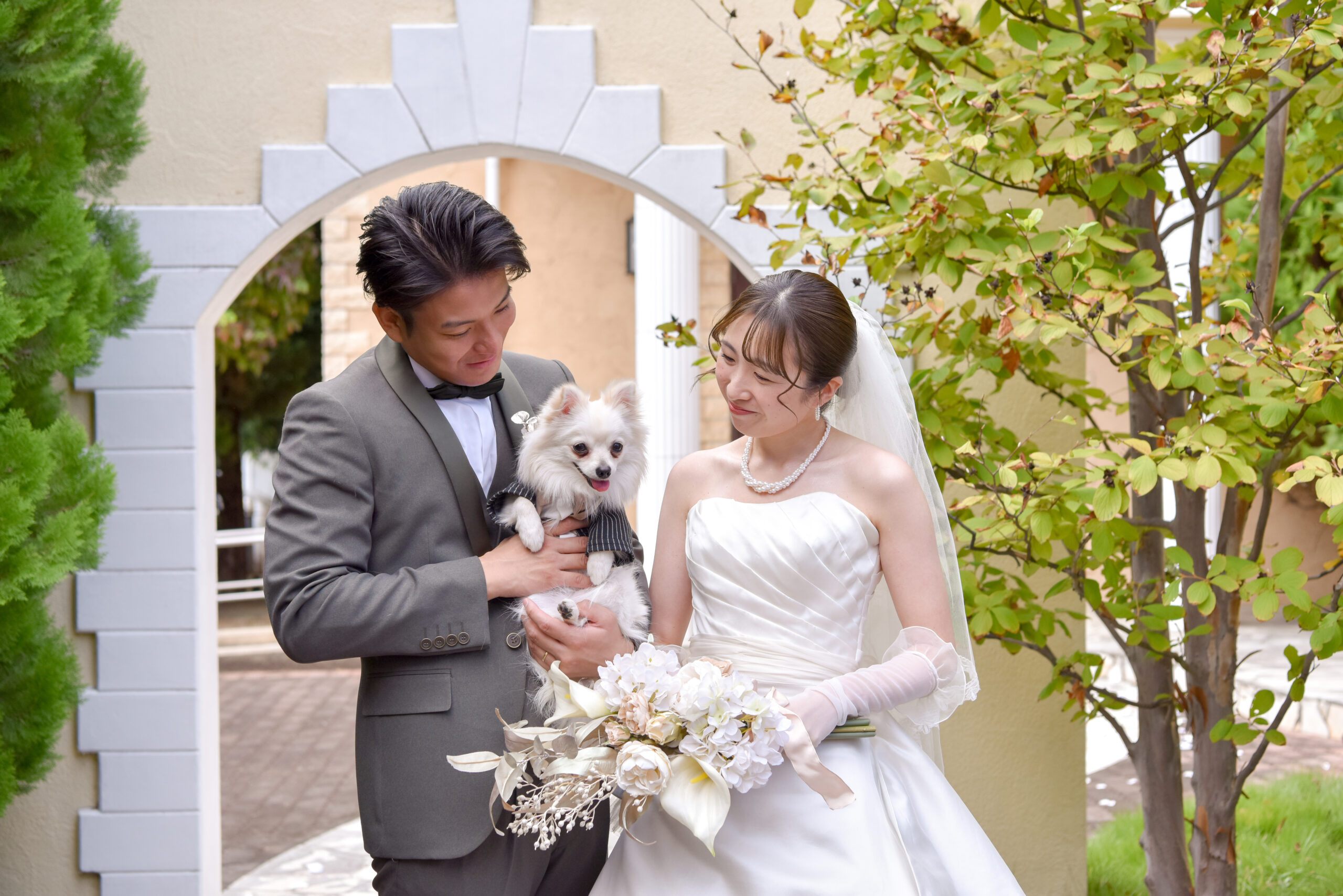 人前式なのでペットのワンちゃんにもご参加いただいたり、カラードレスを着たりしてお2人らしさを出せますので、挙式をご検討されている方はお気軽にプランナーにご相談ください😊