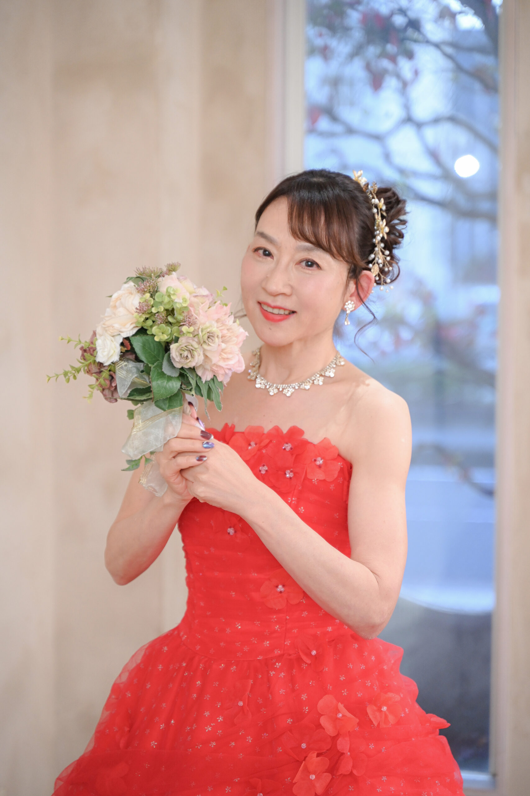 フェリチタ店のチャペルで赤ドレスを着て撮影しました✨